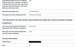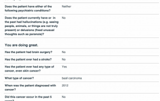 • Are you interested in learning more about clinical trials and treatment options that might be available to the patient based on your answers to this questionnaire? (Yes)